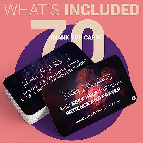 70 Quran Verse Kudos Cards in Arabic – Inspirational Religious Islam Faith Muslim Scripture Quotes Mini Postcards – 14 Unique Thank You Appreciation & Encouragement Prayer Blank Back – Mosque or Home