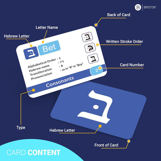 Biblical Hebrew Alphabet Flash Cards – 48 Alef-Bet Letters with Pronunciation & Stroke Order – Best Learning Tool for Students & Educators