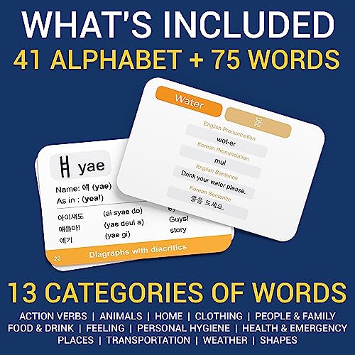 Korean Language Flash Cards – Essential Hangul Alphabet & Vocabulary for Beginners – Learn Korean with Pronunciation & Visuals – Fun & Engaging Study Tool for Kids, Students & Adults