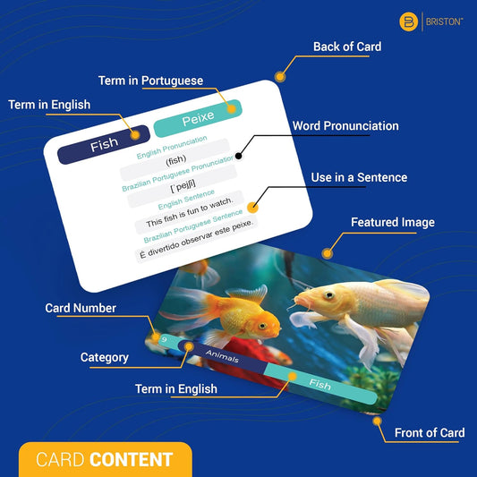 Portuguese Vocabulary Flash Cards - 75 Beginner Vocab with Pictures - Brazilian Dialect - Memory & Sight Words - Educational Language Learning Game Play - Kids, Grade School, Classroom Homeschool